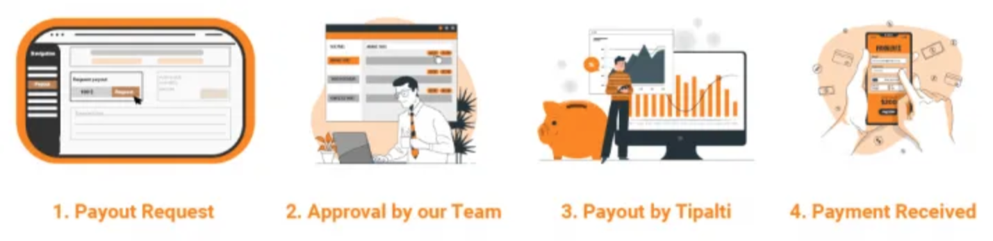 After you’ve requested your payment, our team will look at it and check it for quality control and safety reasons. If everything is fine, we will approve your payment and send it to our payment provider Tipalti. They’ll handle the transaction process according to the information you set in your dashboard and send it to you. After everything is processed successfully, you’ll receive your payment according to your preferred payment method.